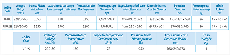 I forni sono forniti completi della relativa pompa per vuoto mod. VP45