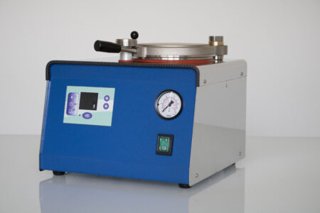 Apparecchio per la polimerizzazione a pressione delle resine, che permette la cottura di ponti e corone a temperature regolabili per la polimerizzazione a caldo e a freddo.