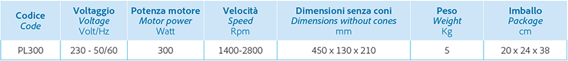 Pulitrice da banco compatta ed ergonomica da 300 Watt con funzionamento a due velocità 1400 e 2800 RPM.