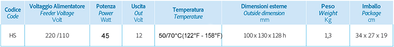 Fabbricato in alluminio offre un’ottima precisione e diffusione del grado di riscaldamento che può essere selezionato su due livelli di temperatura di 50 e 70 °C