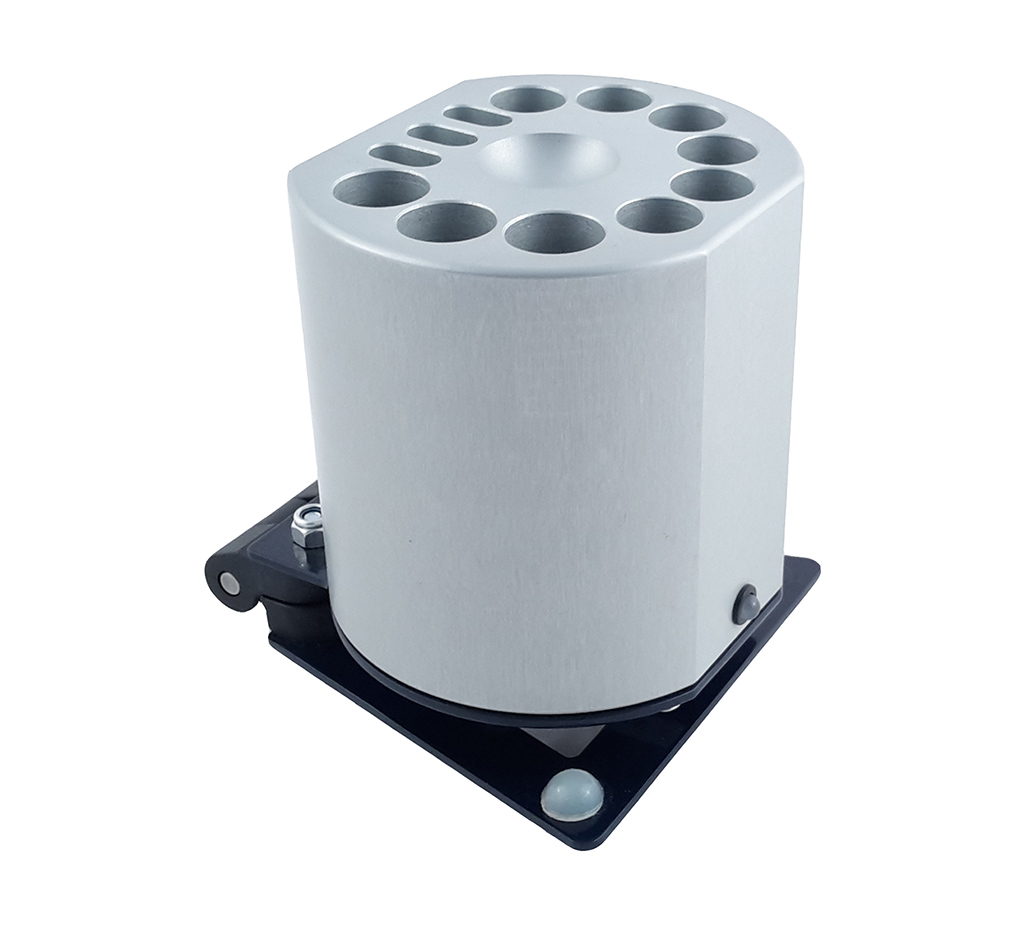 Apparecchio riscaldante multiplo per capsule e siringhe di composito dentale con 12 differenti fori di posizionamento, concepito per tutti i tipi di siringhe standard .