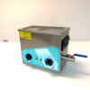 Vasca di lavaggio ad ultrasuoni creata appositamente per lo studio ed il laboratorio dentale. L’apparecchio e’ stato progettato per avere un buon rapporto qualita’/prezzo, sfruttando l’efficacia del principio di funzionamento ad oscillazione forzata che migliora l’effetto di cavitazione indotto nel liquido. Create completamente in acciaio inox per durare nel tempo. I comandi semplici ed intuitivi ne facilitano l’utilizzo ed aumentano l’affidabilita’. Montano trasduttori ceramici troncoconici di elevata potenza. Resistenza di riscaldamento disinseribile e controllata da un termostato puo’ portare il liquido fino a 80°C. Bassissimo inquinamento acustico lavorando su una frequenza di 40 Khz. Vasca da 4 lt. Completa di comperchio inox e cestello